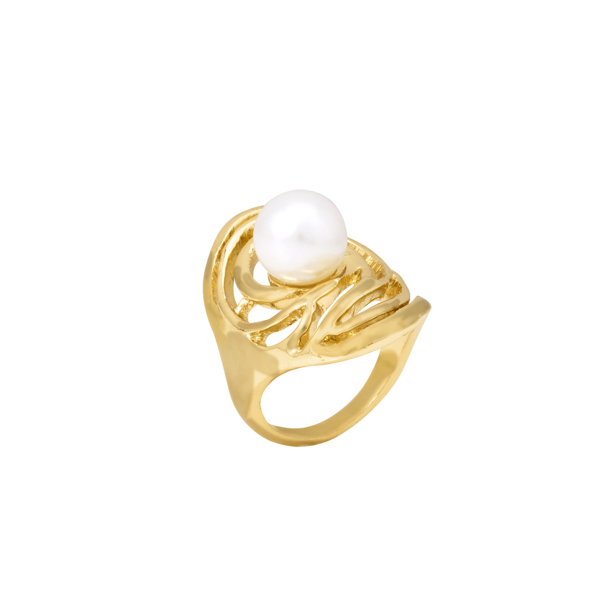 Anillo fabricado en chapa de oro, color dorado, con hermosa perla en el centro del anillo talla 7 y 8