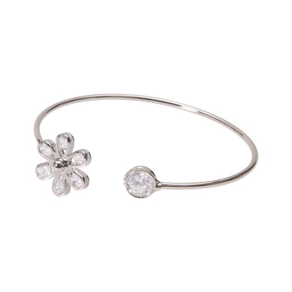 Brazalete en chapa de rodio con zirconia incrustada en flor
