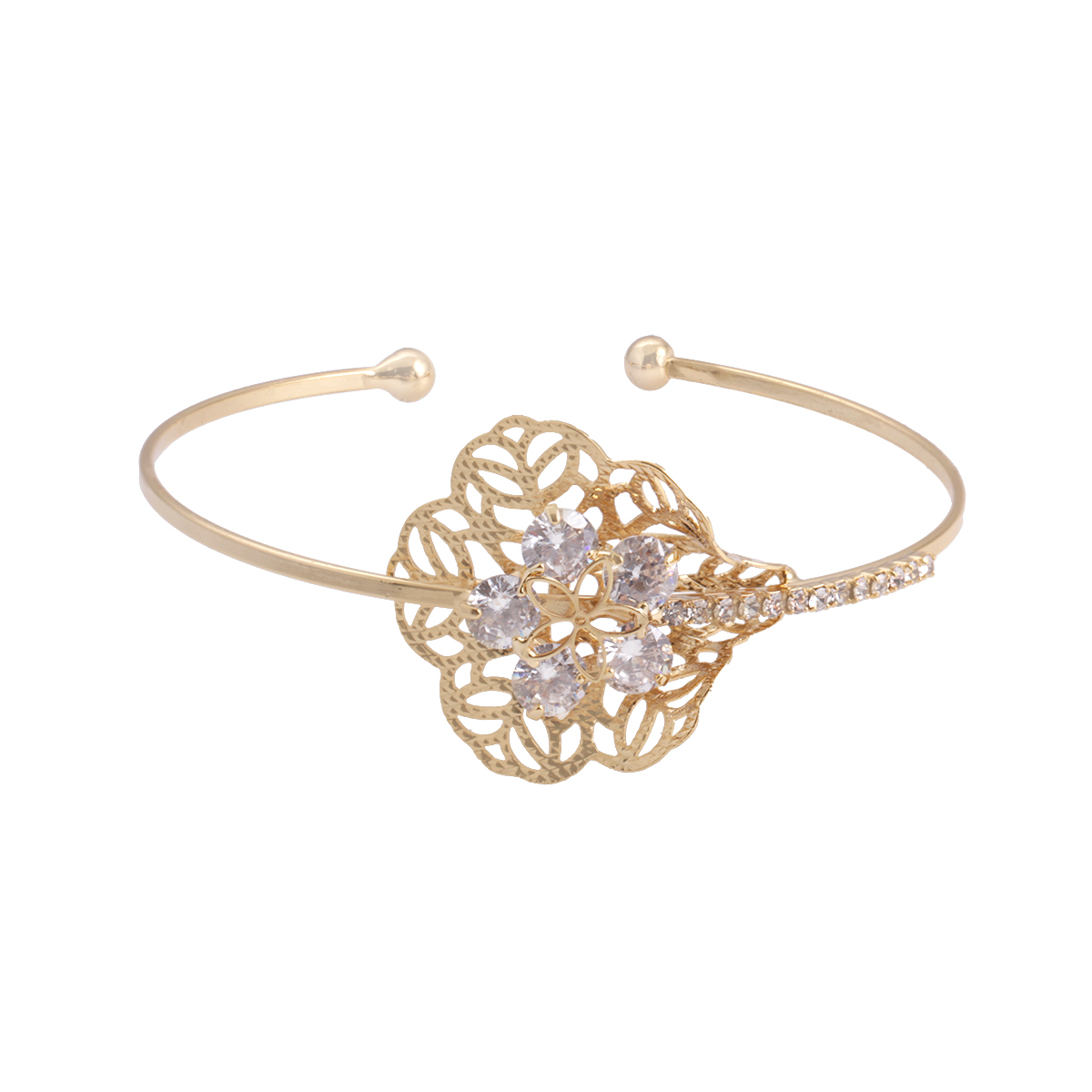 Brazalete Diseño De Flor Con Zirconia Bañado En Chapa De Oro