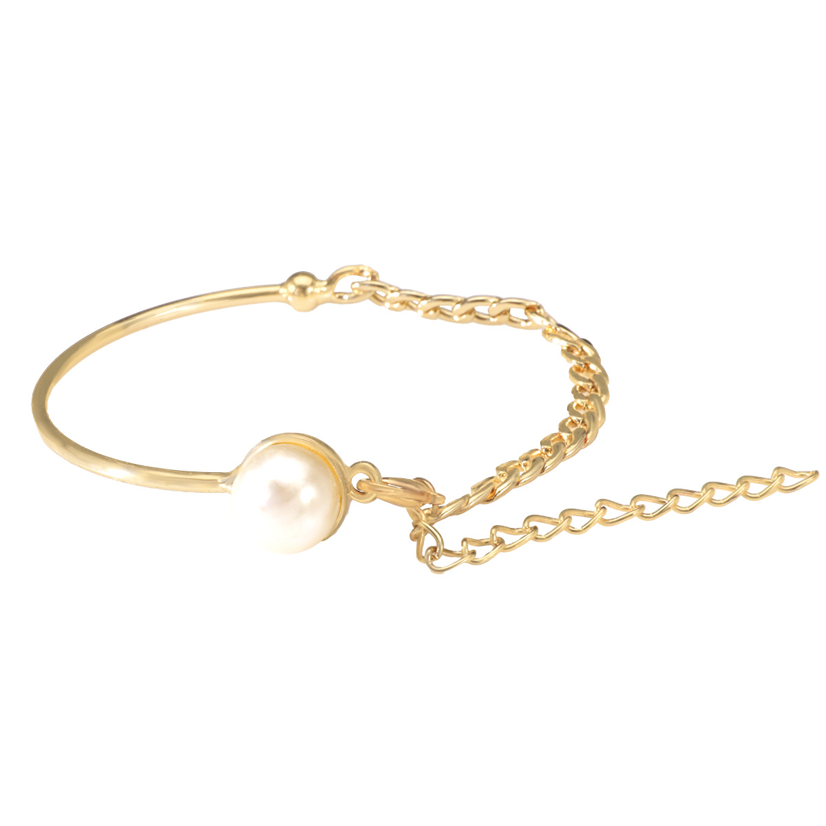 Brazalete mitad cadena con una perla en el centro fabricado en baño de chapa de oro de 18k color dorado